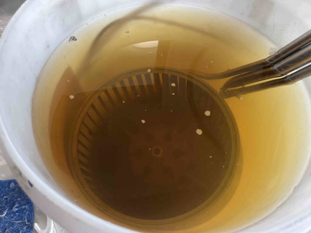 ファンのつけ置きバケツを興味津々に見ていただきました笑